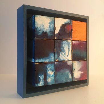 Encased in a painted wood drop shadow box or on a reclaimed piece of wood, these artworks achieve depth and dimension, allowing light and shadow to interact dynamically with each component. Perfect as statement pieces or subtle accents, they blend texture, colour, and form, transforming any space with their sophisticated yet organic aesthetic.