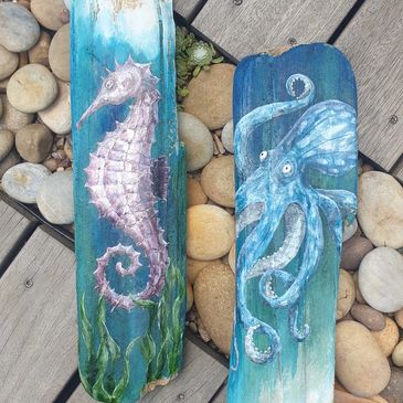 Each of my hand-painted wood pieces is crafted with care, using ink to bring out the natural texture and character of the wood. As each piece of wood is unique, so is the finished piece ensuring it is genuinely one of a kind. Painted entirely by hand onto either drift wood or reclaimed wood, these unique artworks come ready for wall hanging or shelf display, adding a touch of natural beauty and individuality to any space.